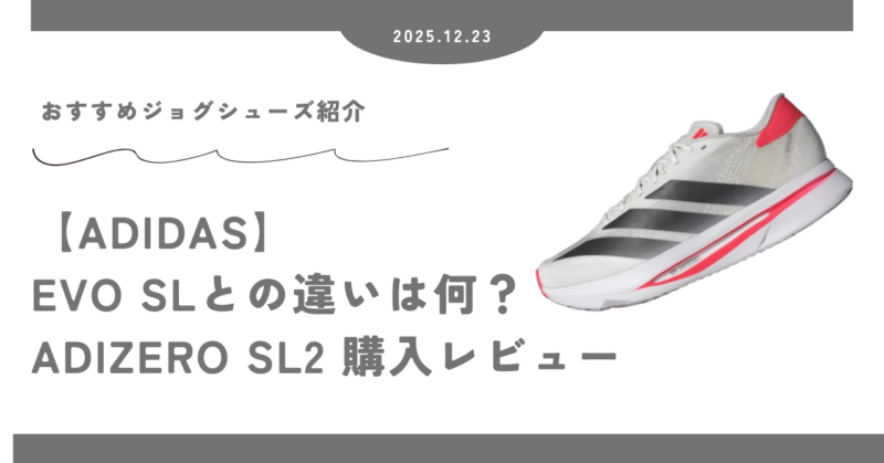 アディダスのアディゼロシリーズから、2024年に新しく発売された「Evo SL」と、人気の「SL2」。どちを選ぶべきか迷っているランナーも多いのではないでしょうか。この記事では、両モデルの違いを詳しく比較し、あなたに最適なシューズ選びをお手伝いします。