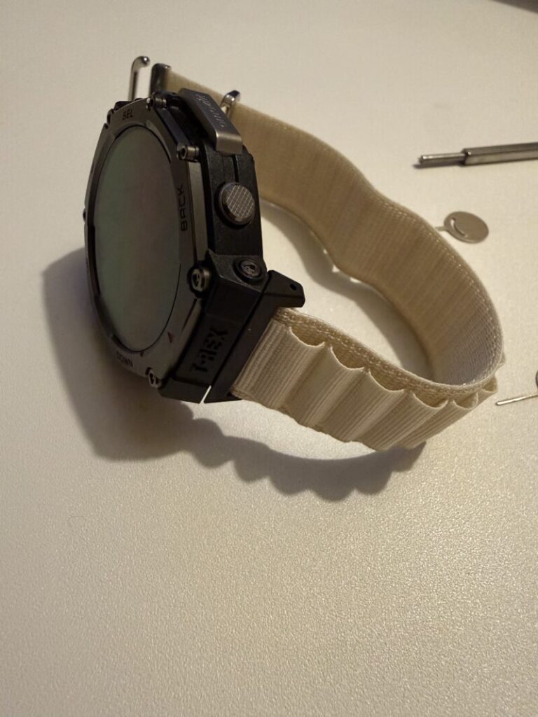 日常生活はまったく問題なさそうですが、これで走るとなると、ウォッチ本体の重さ(T-Rex 3は結構ゴツい)で揺れてしまい、