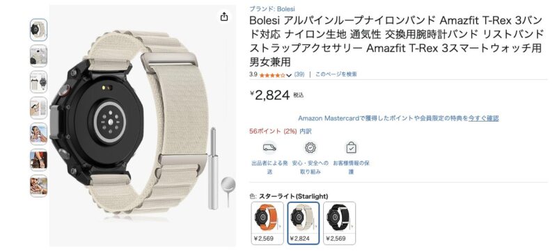 本当はAmazfitの公式サイトで純正品を買いたかったのですが、ちょうどナイロンバンド(22mm)が売り切れていたため、Amazonから探すことに。