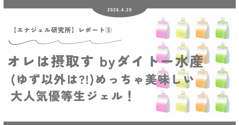 切り取りタブも可もなく不可もない大きさで、レース中の取り回しにおいて不便することはないだろうし、液体タイプのため飲み切るのも容易そうだ。無理に難癖をつけようとすると、液体タイプは摂取によってむせる可能性と満足感(空腹感を満たす感じ)が少ないことか。満足感においては他のジェルと組み合わせることで解決すべし。