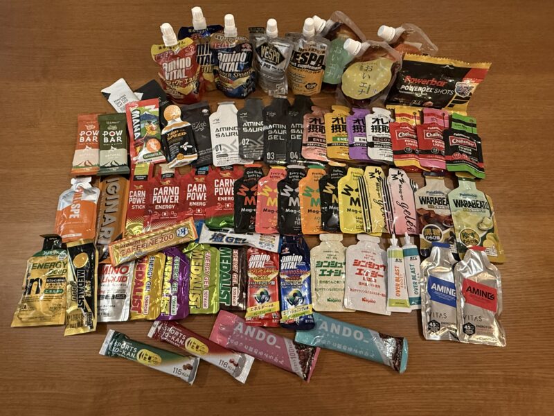 というわけで初っ端から大変な出費になりましたがこれからゆっくりレビューします。こんだけジェルあれば100マイルレース3回分くらいはいけそうですね。