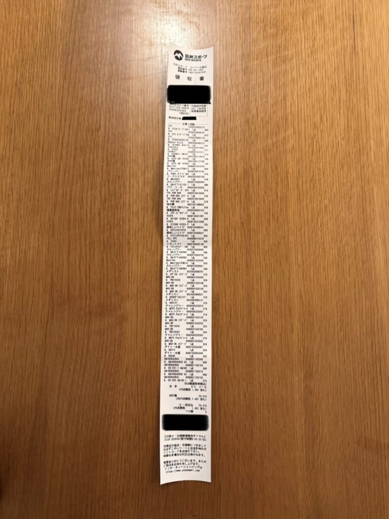 レシート長っ!店員さんはとても丁寧に点数を数えながら、袋に入れる際もできるだけ種類ごと、サイズごとに綺麗に入れて対応してくださってました。ただの好奇心で爆買いしただけなのにお手数をおかけしてすみませんでした。