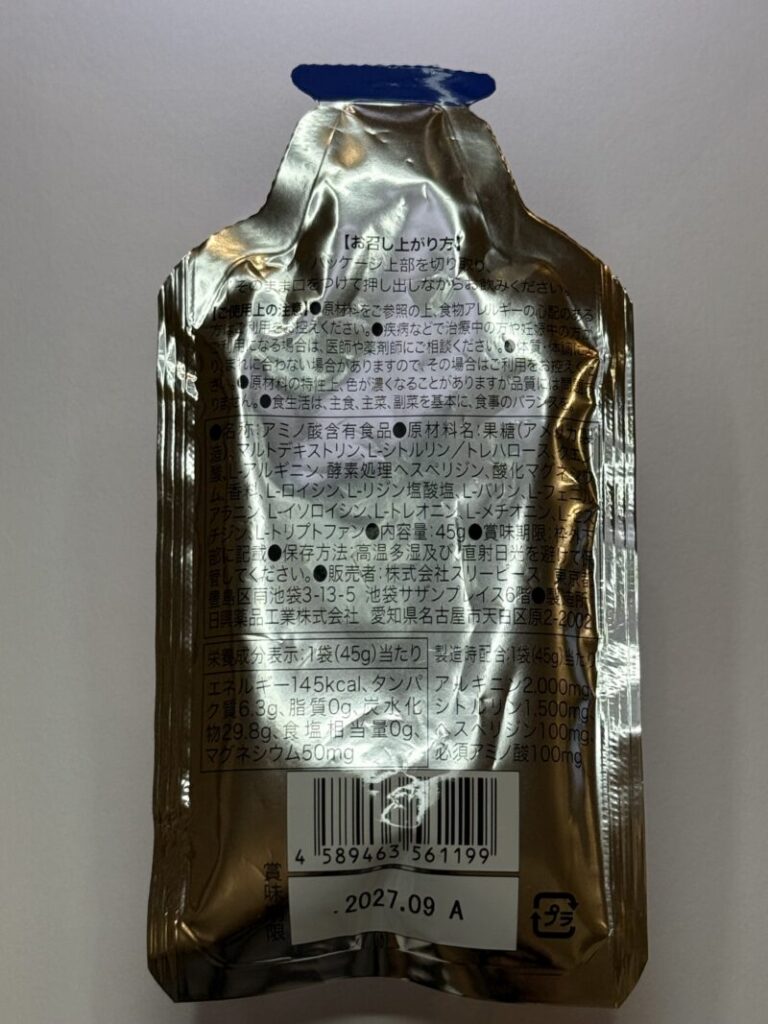 とは言えこれだけの重さでカロリーが145kcalは優れているのでそこに文句をつけるのはお門違いだとも思う。エナジェルに多くを求めない人にとっては素晴らしい割り切りのコンセプトだと感じた。