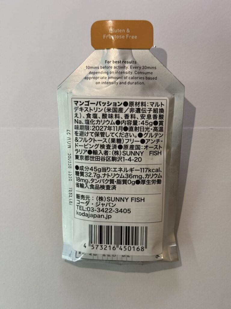 KODA ENERGY GEL(コーダ エナジージェル)MANGO PASSION(マンゴーパッション)の情報
