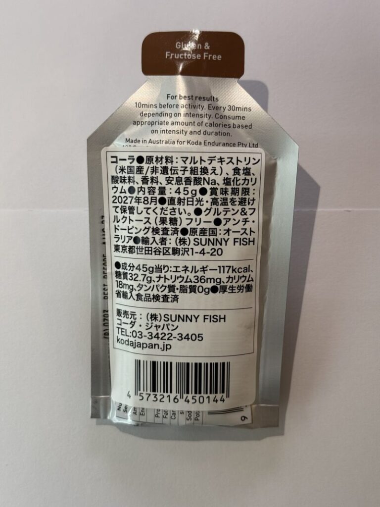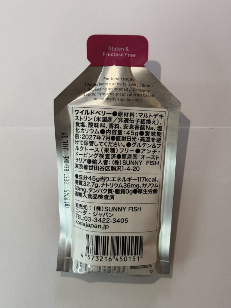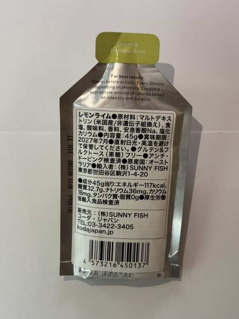 KODAのノンカフェインタイプは総じて味が薄かったが、ジェルとしての摂取ストレスはそこまで高くない。甘いだけでジェルは十分だ、成分もシンプルなのがいい、グルテンアレルギーだ、というニーズには応えてくれる。ジェルにもいろんな相性があるので1個買ってみても損はしないが、最初は1つでそれを試してみるのがいいと思う。