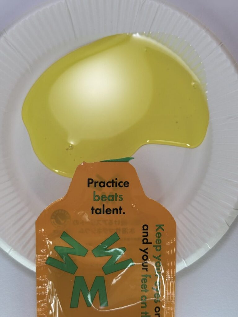 この青みかん味は他と一線を画すジェルの黄色さが目立っています。成分としてはビタミン系が含まれており、みかん果汁も使用されているためか、独特の風味が際立ちます。