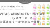 パッケージの開封しやすさも問題なくレース中の取り回しも問題なさそう。ただネックになってくるのは価格と重さだ。377円とやや高めの価格設定で尚且つ65gと他製品と比べても重たいため、コスパが悪めとなっている。水分が多めなのでしっかりと口に入れて押し出さないと手に汁がついてべとべとするのもやや気になる点か。