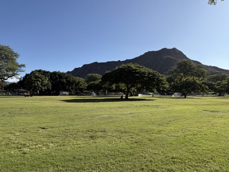 - ゴールのカピオラニ公園を横目にダイヤモンドヘッド方向へ(10kmはここのカピオラニ公園でゴール)