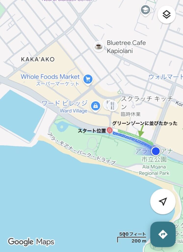 - アラモアナショッピングセンター、公園の周辺がスタートでその後カメハメハ大王像の前を通り再びアラモアナに戻ってくる