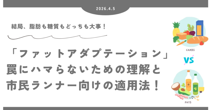 市民ランナーに求められるのは、「糖質に頼らない身体」を目指すことではなく、「糖質を使いこなせる身体」を作ることです。この視点を持つことで、ファットアダプテーションは初めて実践的な戦略として機能します。